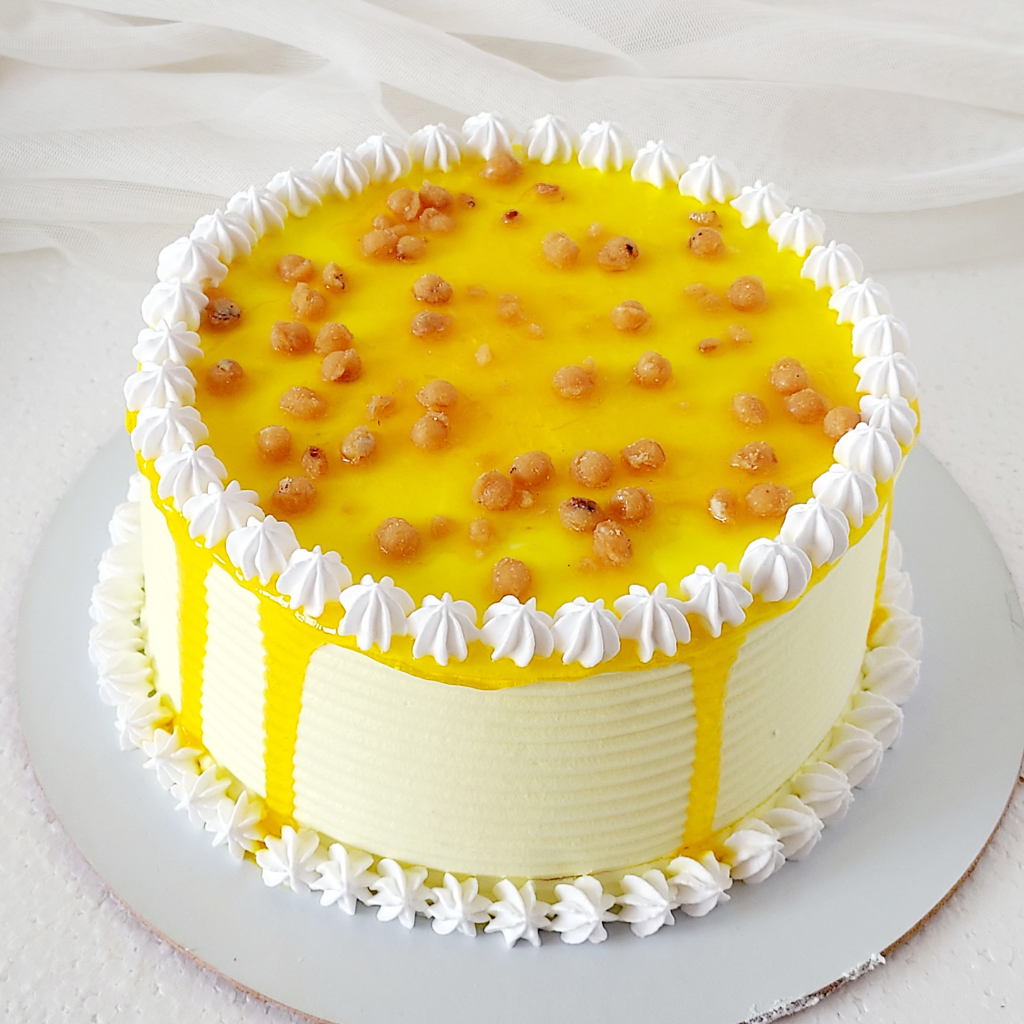 Butterscotch Cakes are preferred by many. Tender sponge, layered with butterscotch sauce, crunchy praline and whipped cream. A perfect choice for celebrations.  Egg free, no preservatives