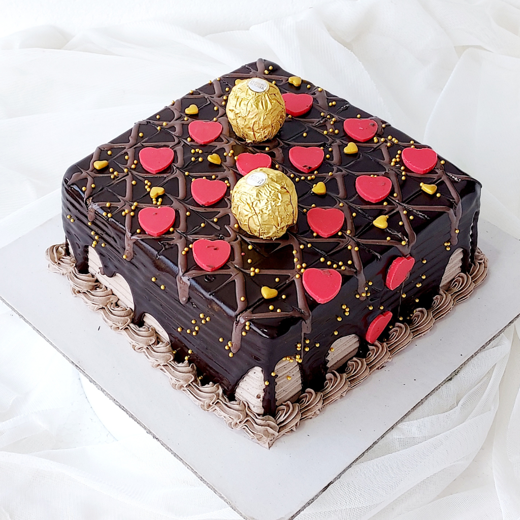 A rich moist chocolate cake with a chocolate fresh cream icing. One of the most popular cakes. Egg free, no preservatives.