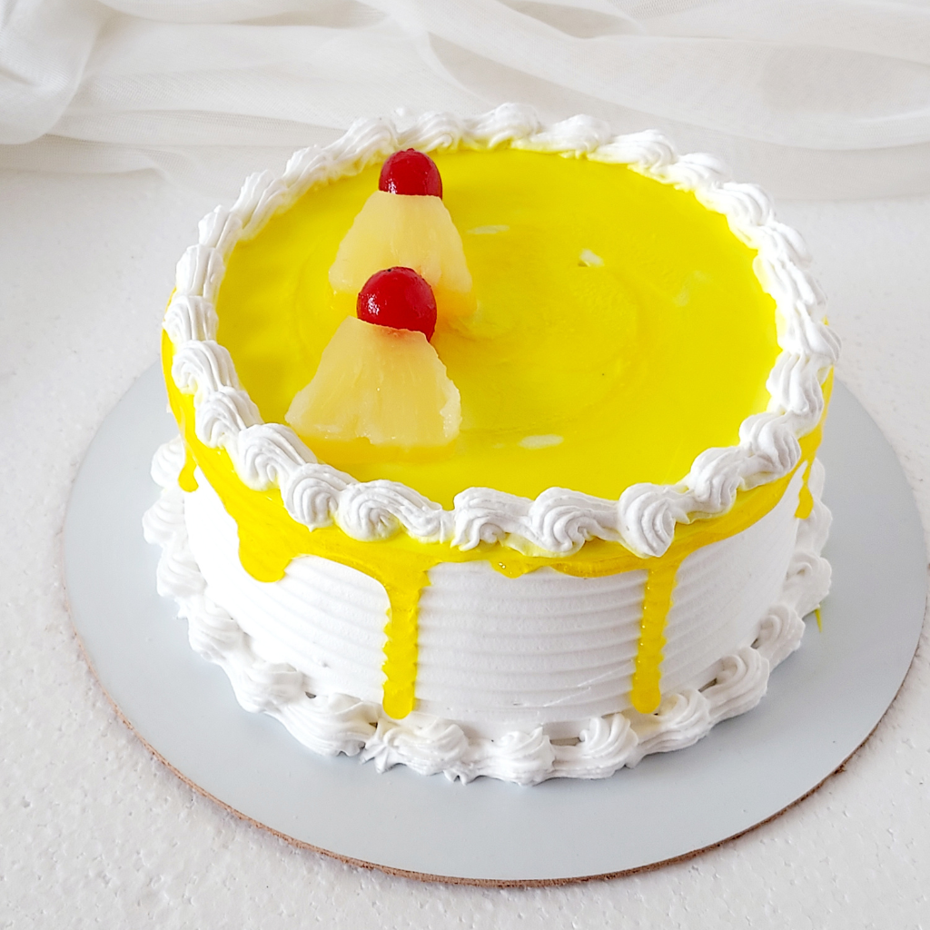 Totally Tropical – A cake with great flavour. Truly moist, homemade pineapple cake with whipped cream icing and it’s finished with pineapple garnishing. Egg free, no preservatives.